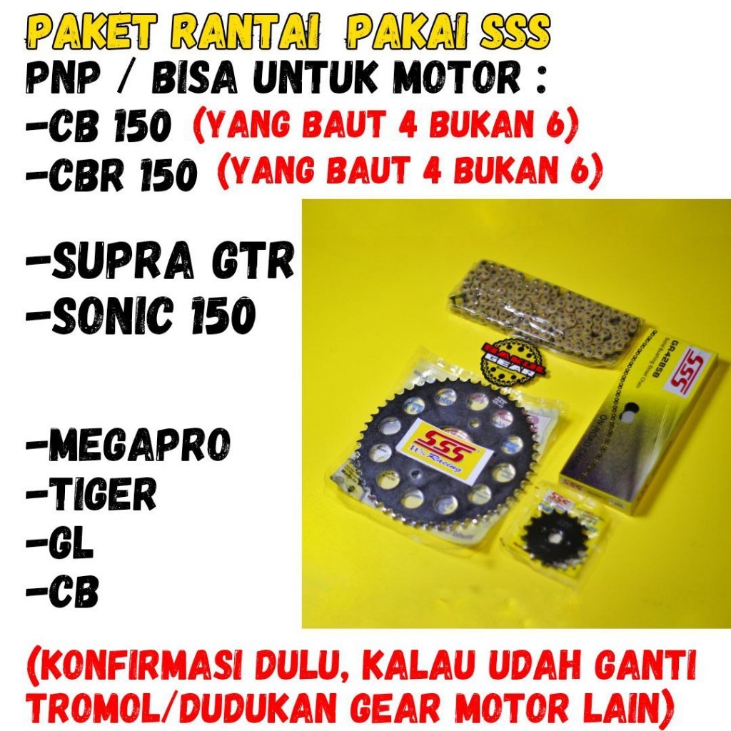 GEAR SET SSS CB150R TIGER CB GL VERZA MEGAPRO SONIC 150R SUPRA GTR CBR 150 RANTAI HSBT KH1