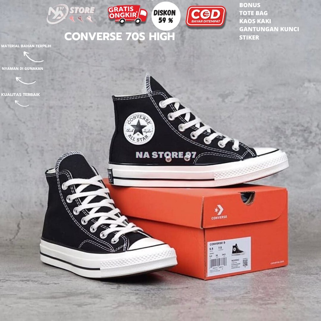 SEPATU CONVERSE 70S HIGH ALL STAR PREMIUM 100 WANITA PRIA SNEAKERS SEKOLAH HITAM PUTIH