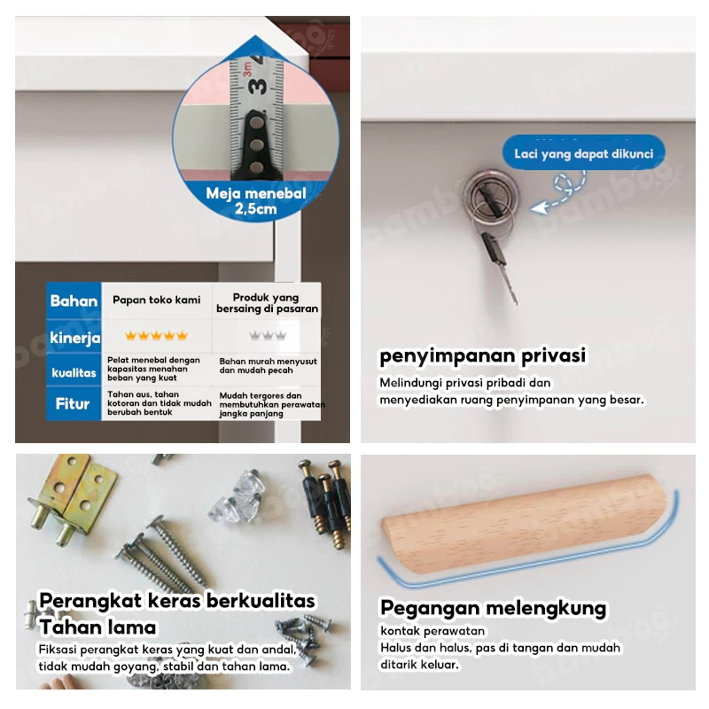 E-TIFE MEJA RIAS PUTIH LAMPU LED MEJA RIAS KACA SLIDING MINIMALIS MEJA RIAS AESTHETIC