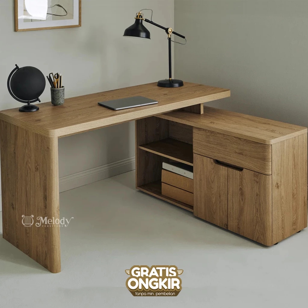 MELODY FURNITURE MEJA KERJA SUDUT MEJA BELAJAR KANTOR TIPE L MINIMALIS MODERN LIBRE 150 CM