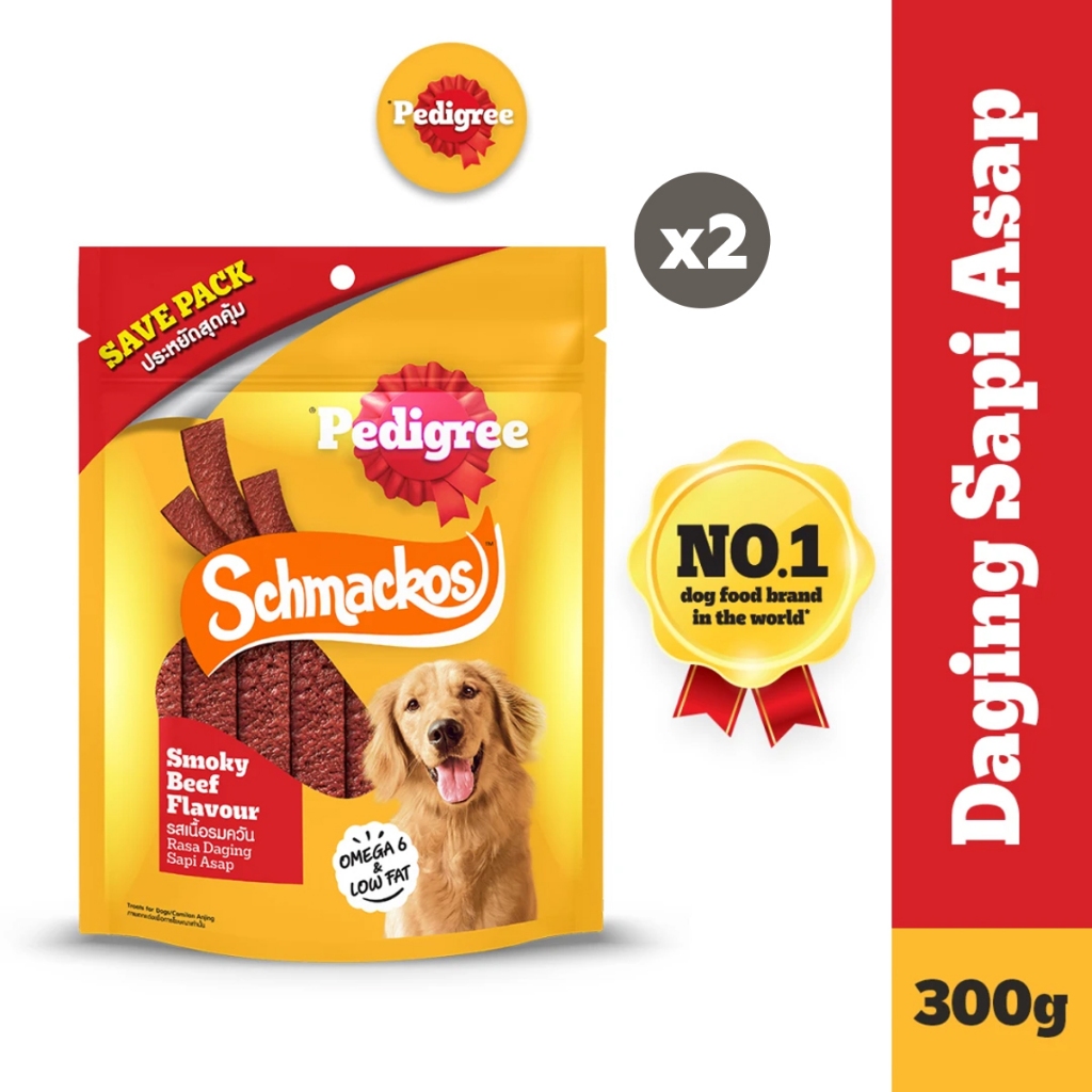 PEDIGREE SCHMACKOS STRAP Snack Anjing Rasa Daging Sapi Asap 300g (2-Pack)