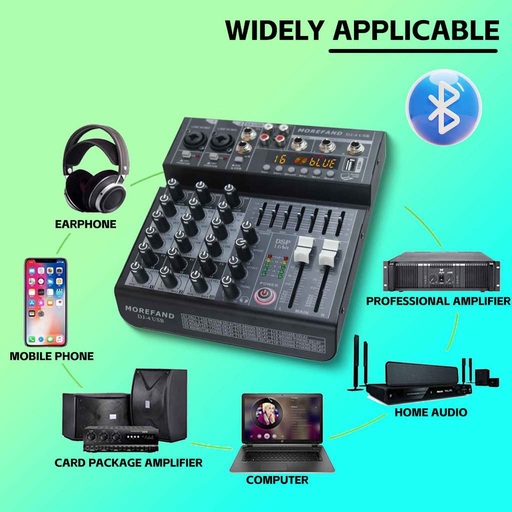 Mixer Aduio DJ6/DJ8 Mixer 4-Channel USB/Electro Bluetooth mendukung penyetelan mobil 12V
