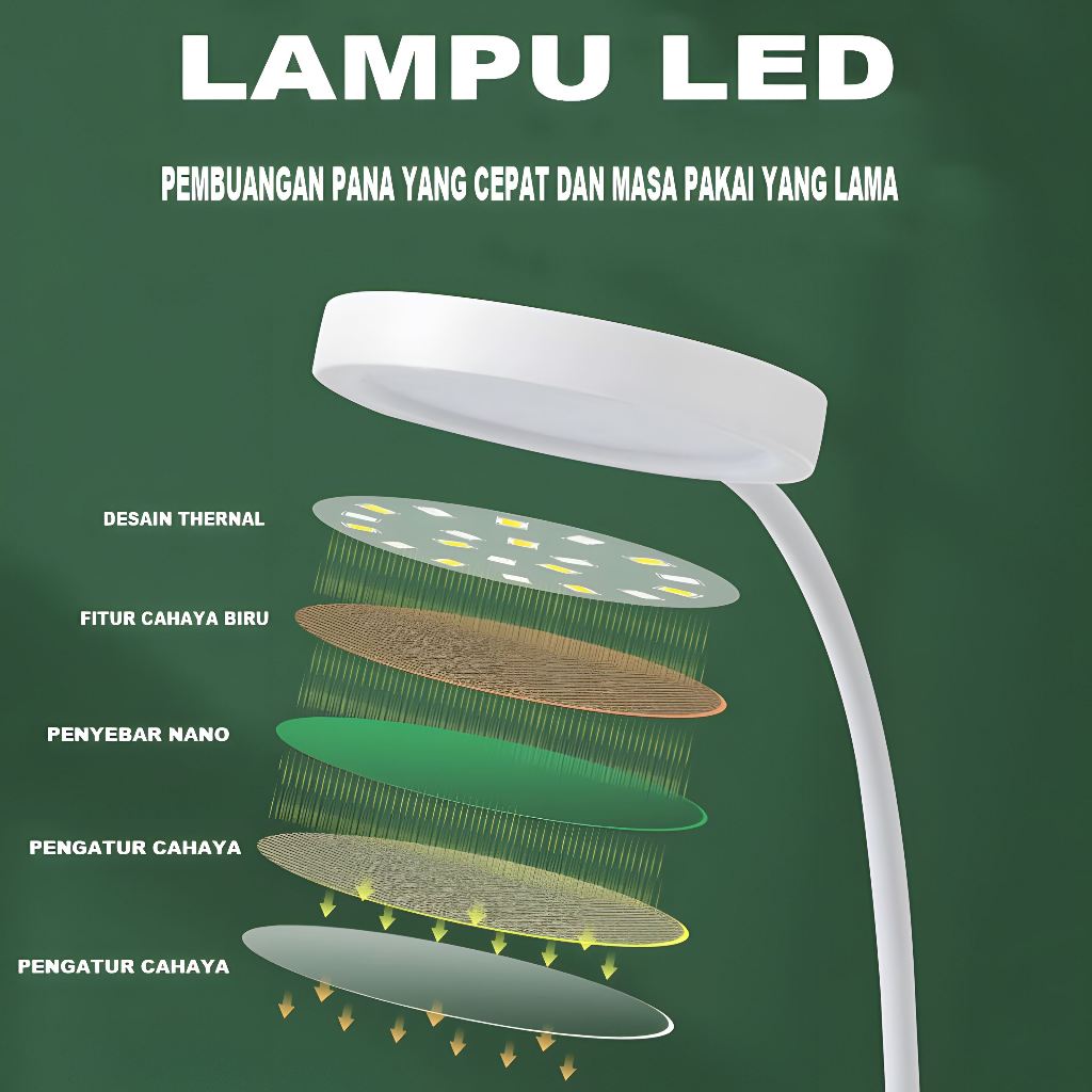 LENTIVEN Lampu Baca LED Portable Meja Belajar Tricolour Sentuh 3 Flexible Tempat Pensil