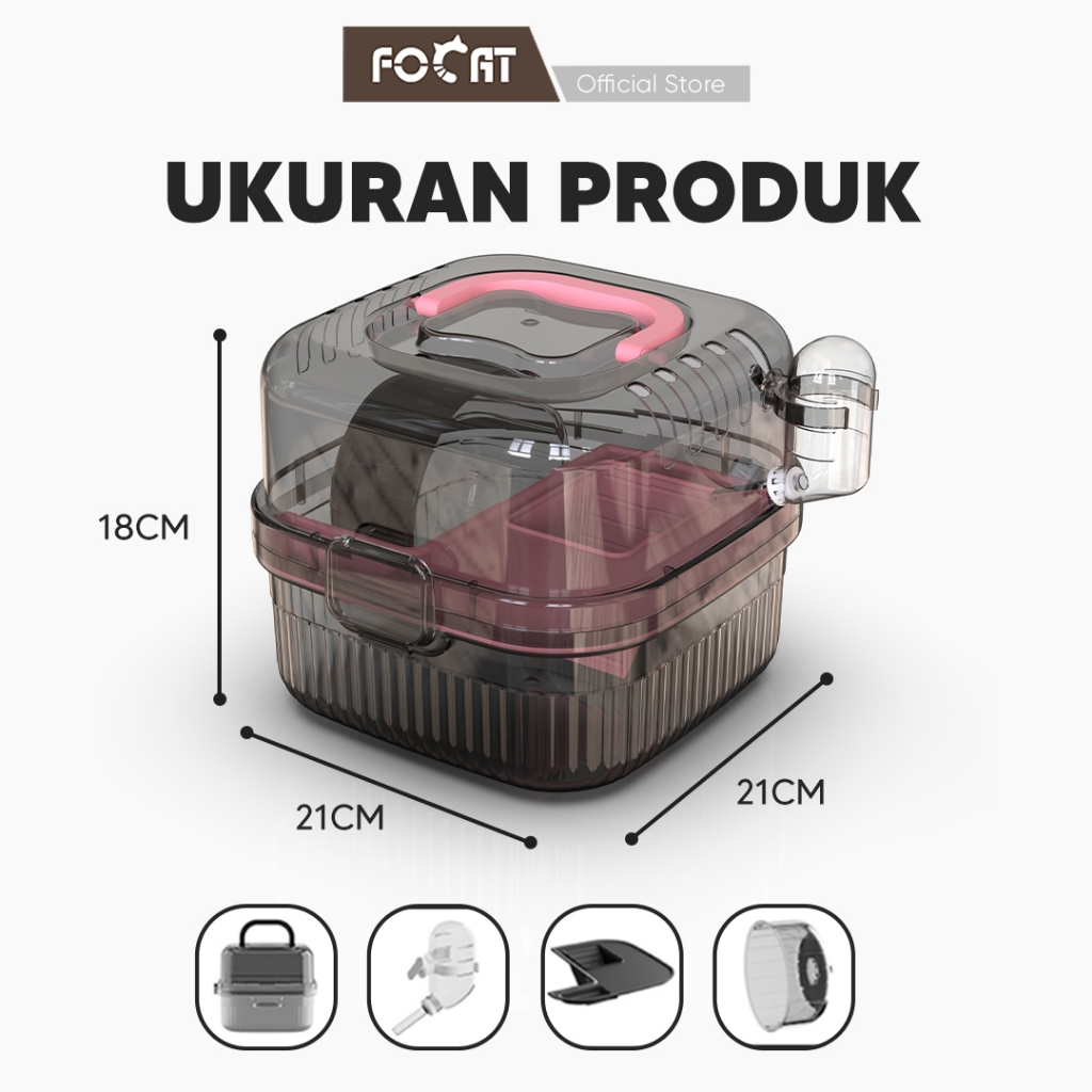 FOCAT Kandang Hamster Portable 2 Tingkat F33 Kandang Mini Hamster Transparan Fasilitas Lengkap