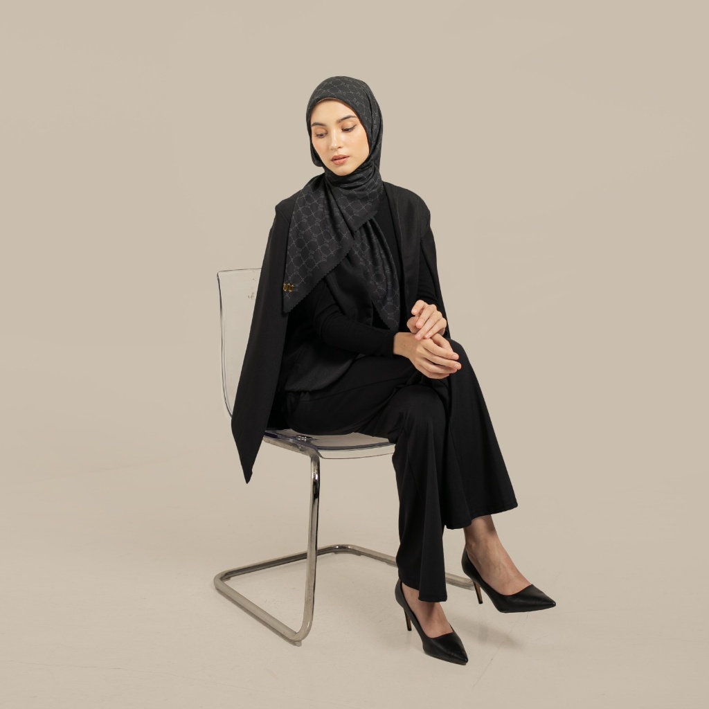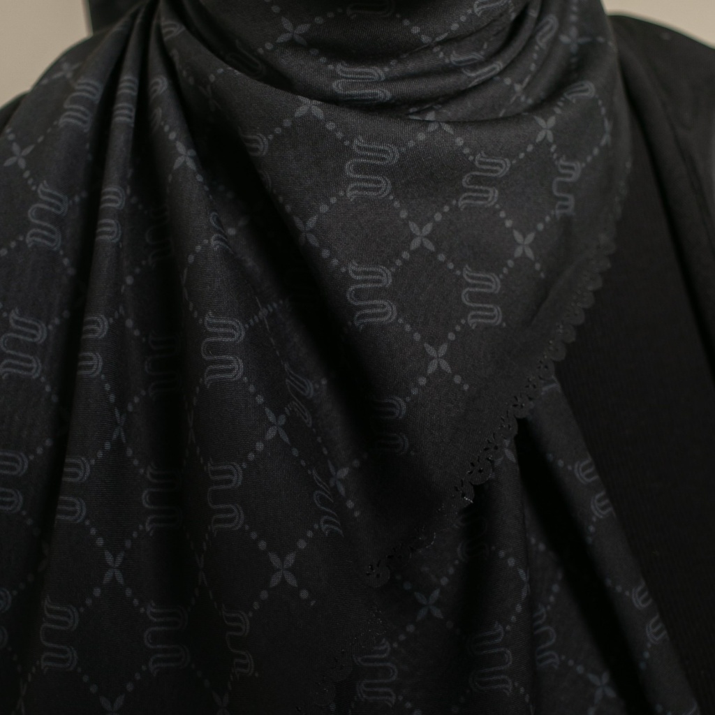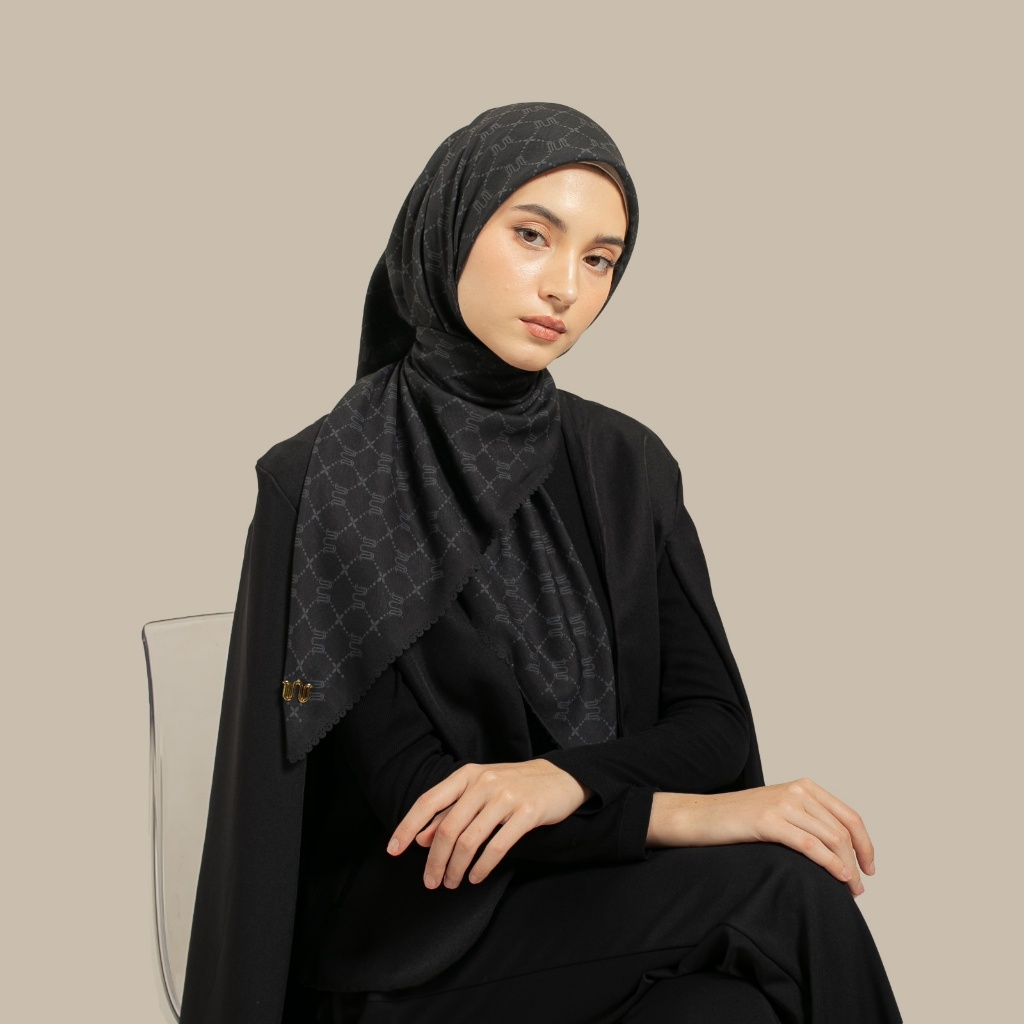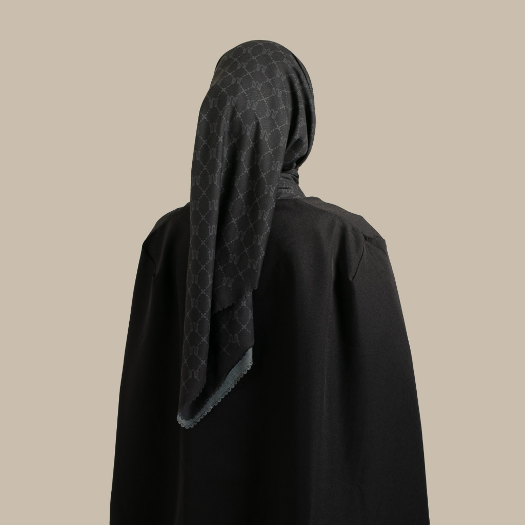 Wulang Narawangsa Hijab Segi Empat Monogram Black | Kerudung Segi Empat | Hijab Motif Segi Empat | Hijab Voal Premium