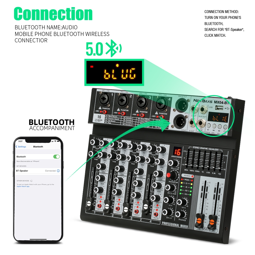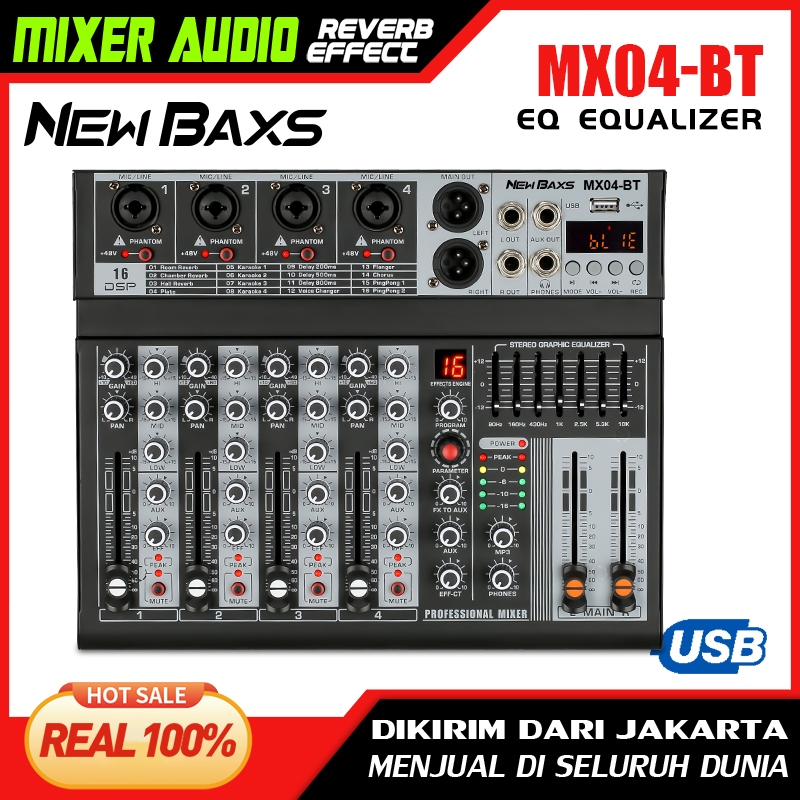 NEW BAXS [Asli] MX04BT mixer profesional 4-channel built-in EQ 16DSP Bluetooth/USB/PC/MP3 playback modeEQ/alat perekam b