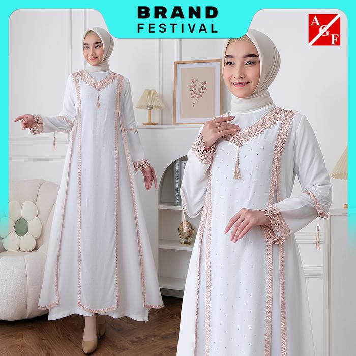 AGNES HIJAB - SHAKILA DRESS GAMIS PUTIH PREMIUM BAJU LEBARAN 2025 TERBARU WANITA DEWASA REMAJA MODEL BARU ELEGAN MEWAH PESTA RENDA ABAYA SYARI MUSLIM 901 - M