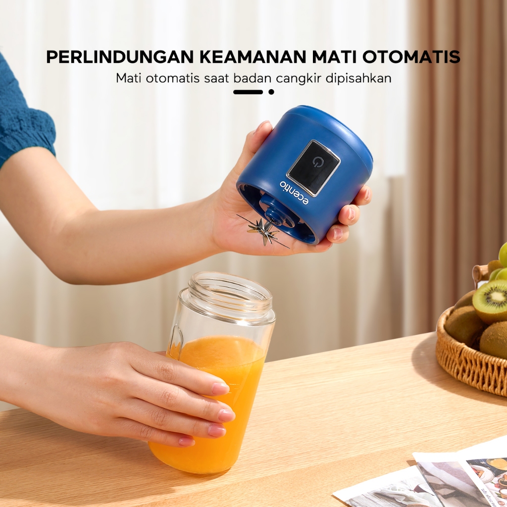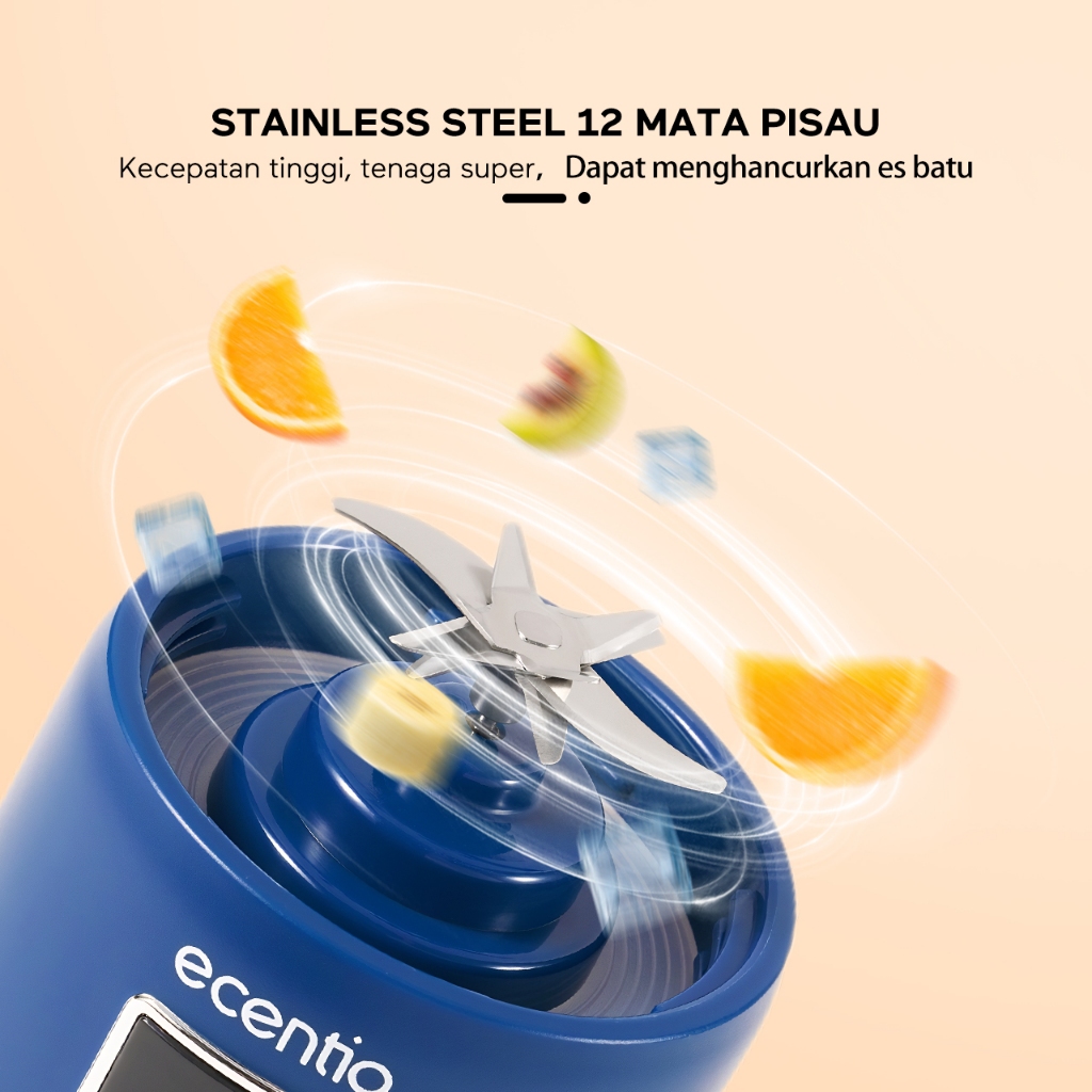 ecentio Juicer Portable LED Touchscreen Dual Cup 500ml+500ml Kaca Gelas MPASI Premium 12 Mata Pisau Juicer Bayi Food Grade Anti Tumpah Garansi 1 Tahun