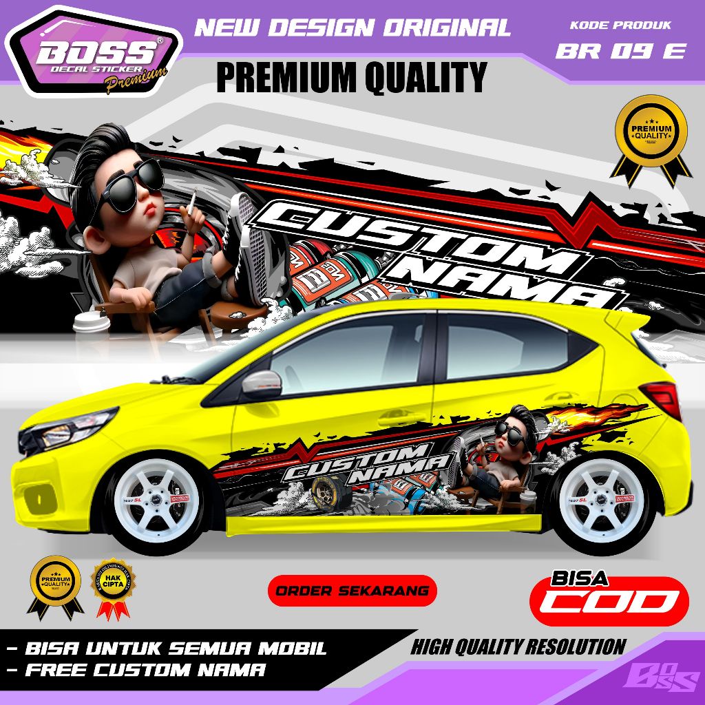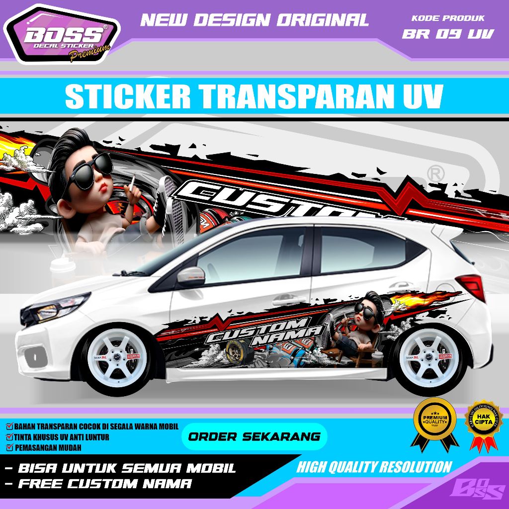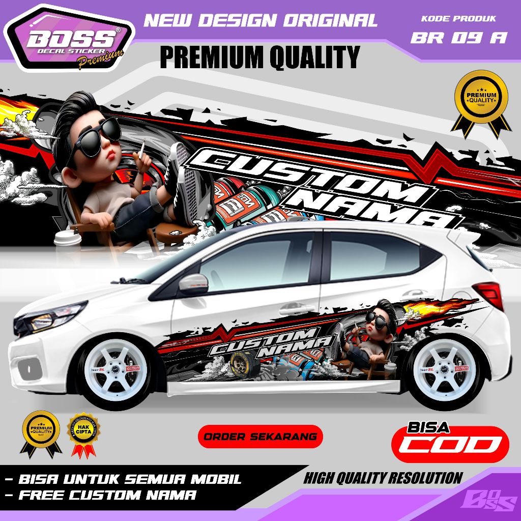 BR 09 - STIKER DECAL MOBIL BRIO PANTHER AVANZA SEDAN INNOVA CALYA SIGRA ERTIGA GRATIS CUSTOM NAMA