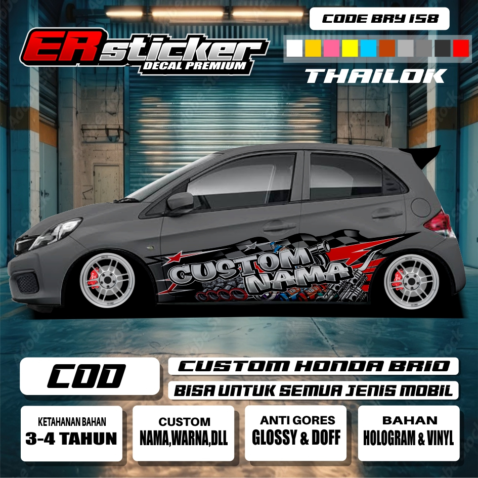 DECAL THAILOK BRY 151-160 MOBIL BRIO AGYA JAZZ SIRION / FREE CUSTOM NAMA / MODEL STIKER TERBARU