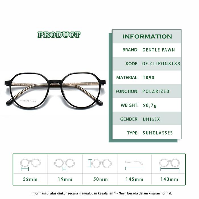 GENTLE FAWN KACAMATA CLIP ON POLARIZED STYLE SIMPLE TR90 RINGAN 8183 - TRANSPARANT, CLIP ON SAJA