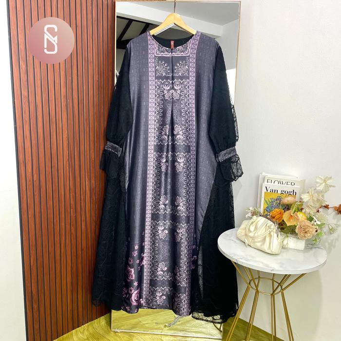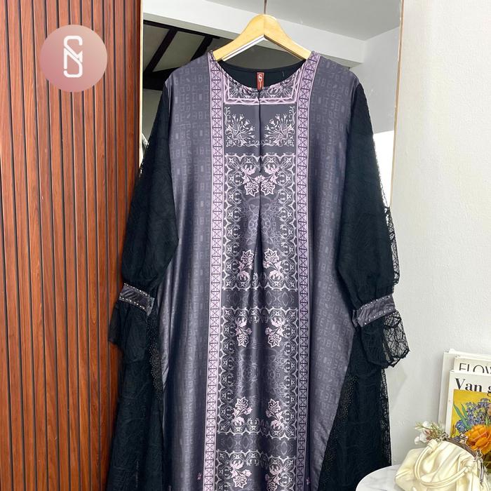 MYSHAWL LAVANA GAMIS JUMBO GAMIS BRUKAT BIGSIZE GAMIS KONDANGAN TILLE MOTIF KASUAL KONDANGAN WISUDA KEKINIAN BIG SIZE DRESS KANCING MUSLIM - BLACK, 2XL