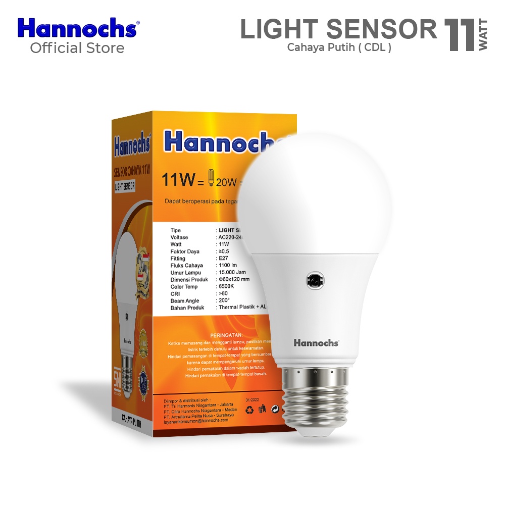 Hannochs Lampu LED Light Sensor (Sensor Cahaya) 11 watt cahaya Putih