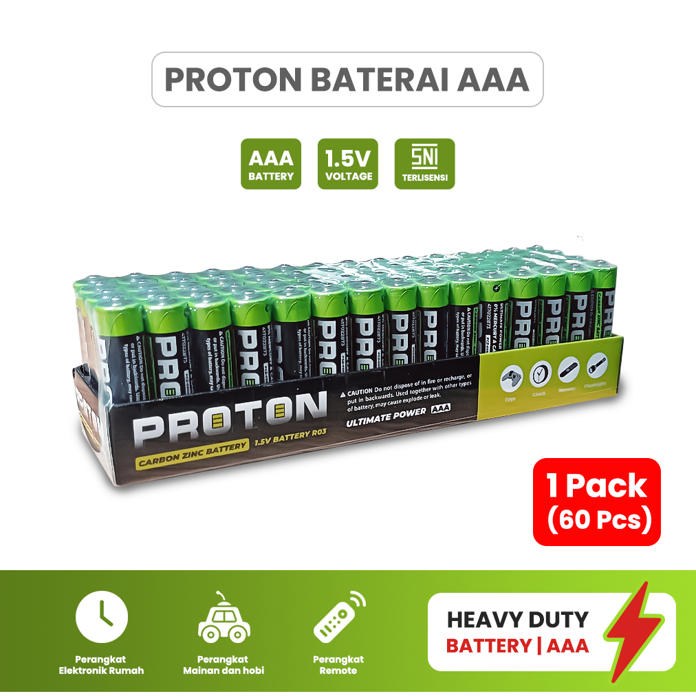 Proton Batu Baterai termurah A3 AAA kemasan 1 slop/60pcs Batre mainan,remote heavy dutty