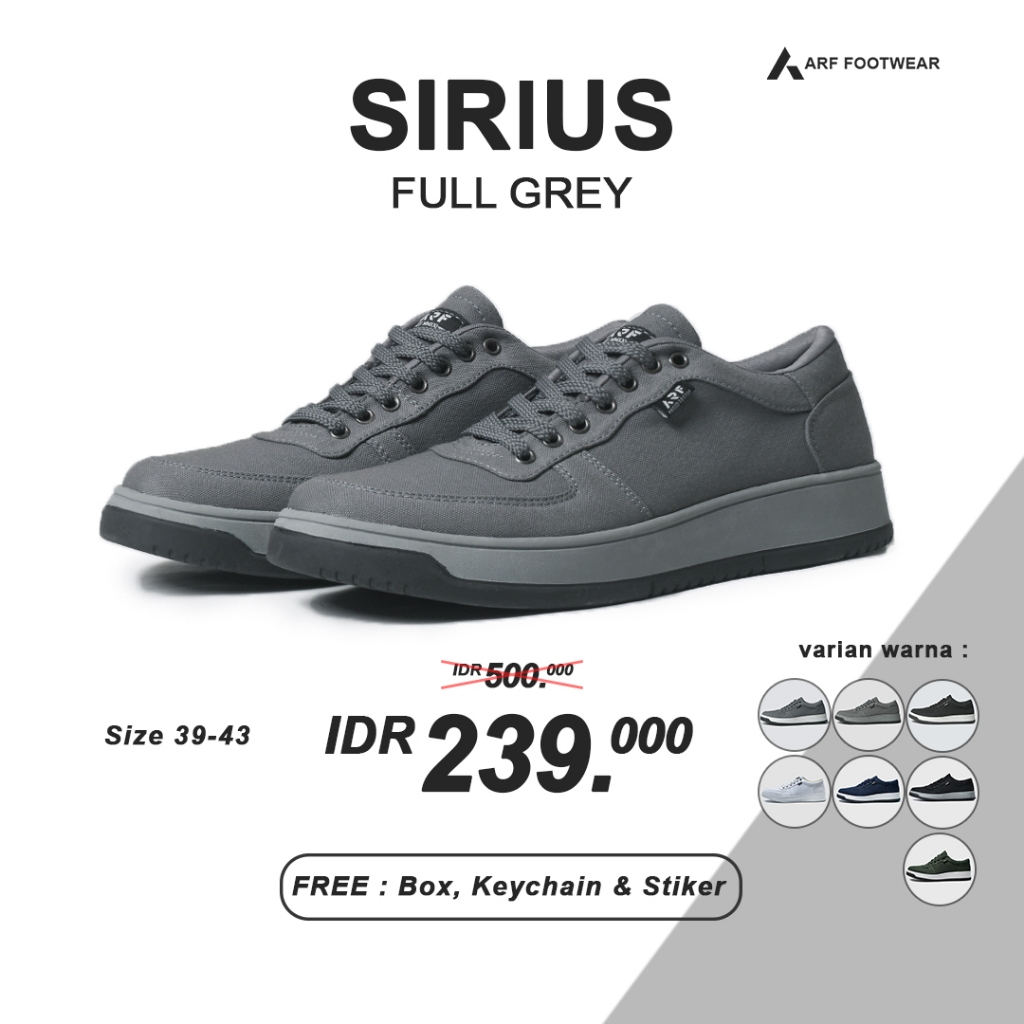 ARF Sirius FullGrey Sepatu Sneakers Casual Pria Wanita Distro Kasual Abu Abu Canvas Shoes