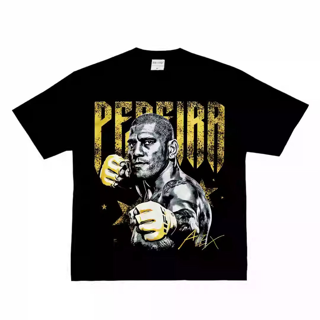 Alex Pereira Kaos Lengan Pendek Longgar Katun Murni Pertarungan UFC Klasik Amerika