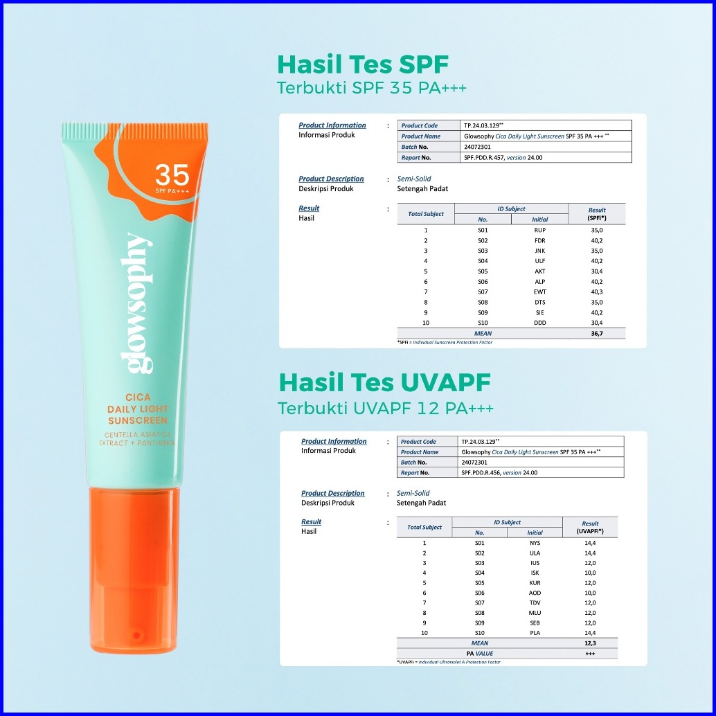 Glowsophy Cica Daily Light Sunscreen Spf 35 Pa Light Soothing Sunblock Wajah Pelembab Skin Membantu Menenangkan Kulit Be