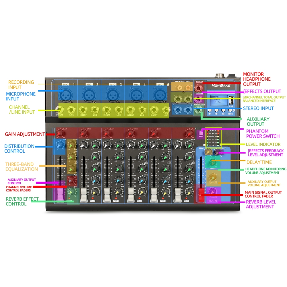 NEW BAXS MG04BT/MG07BT audio mixer DJ MIXER AUDIO 4ch/7ch Support Bluetooth/USB/PC/MP3 playback Recording equipmen