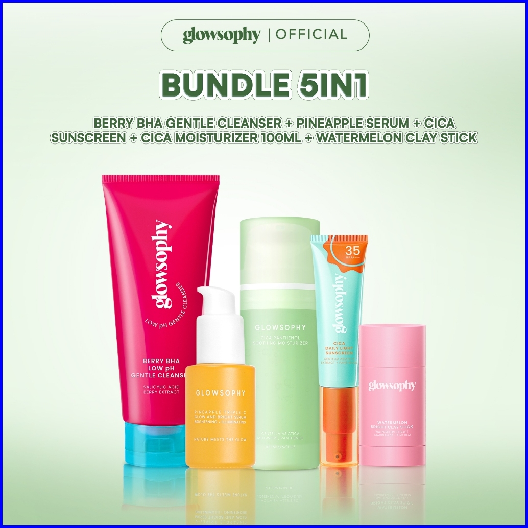 Glowsophy Bundle 5in1 Acne Series Cica Pathenol Moisturizer 100ml Cica Daily Light Sunscreen Berry Bha Gentle Cleanser W