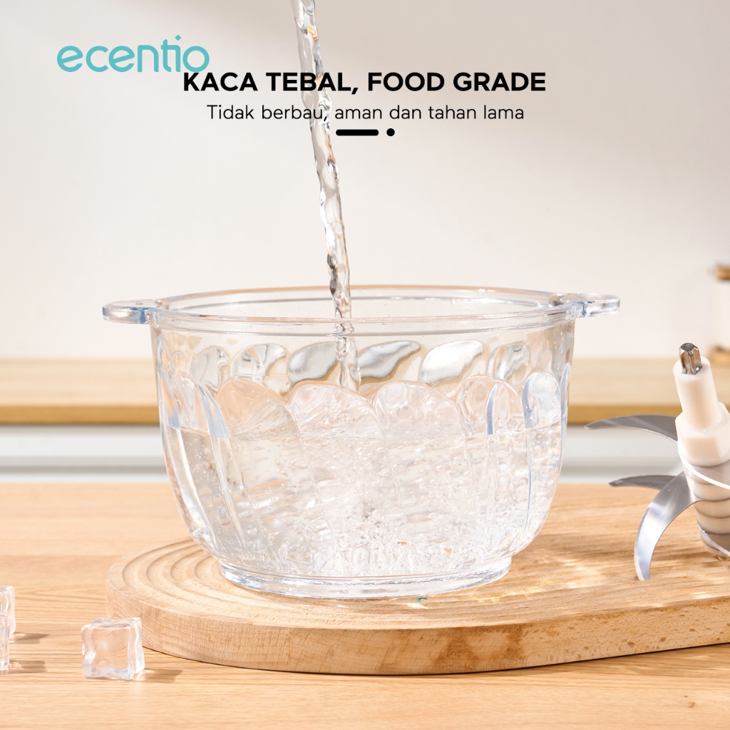 ecentio 3 IN 1 Food Processor Penggiling Daging 6 Mata Pisau 2L Kaca Chopper 350W Food Grade Mesin Giling Daging & Mixer Telur 2 Kecepatan Whisk K3L Certified Garansi 1 Tahun
