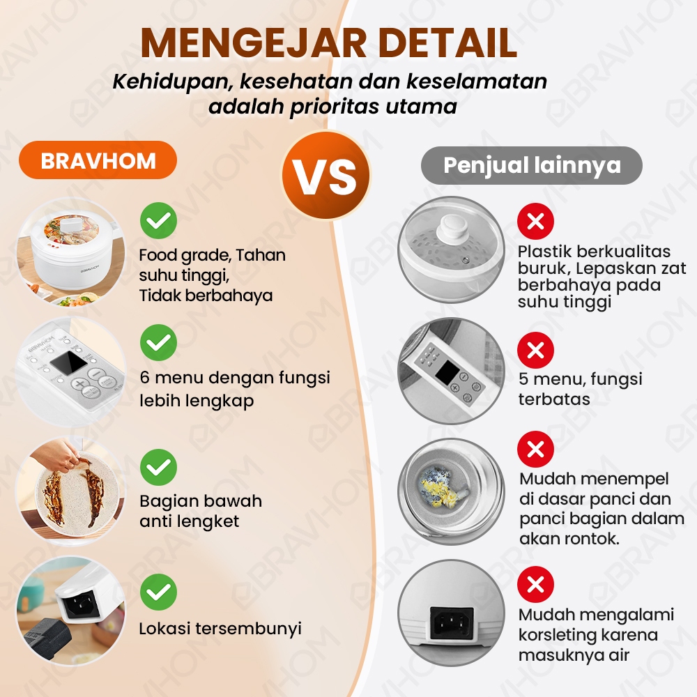 BRAVHOM Panci Listrik Low Watt Kukusan Serbaguna Keramik Anti Lengket 1.8L Anti Gores BL-EP02