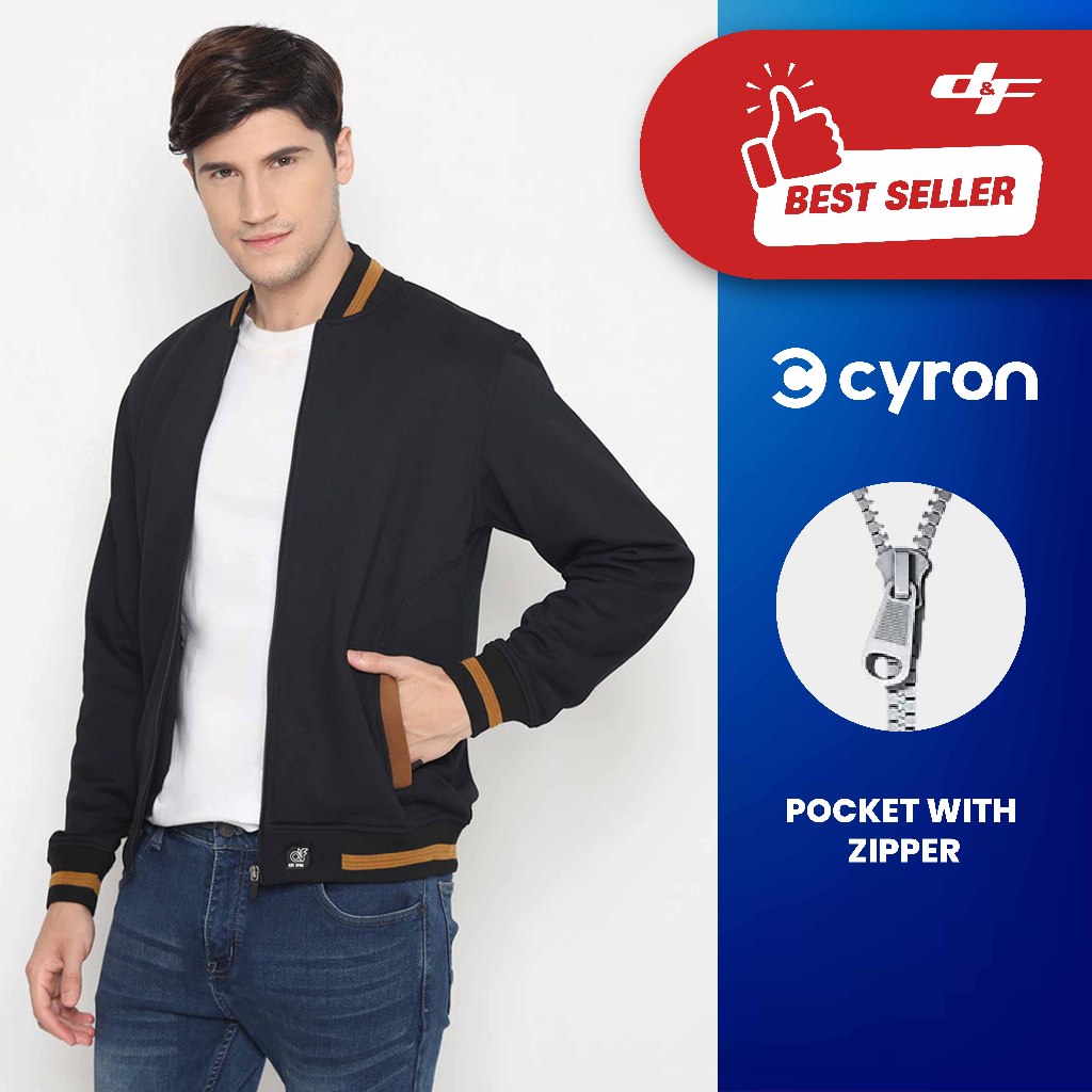 d&f CVC Jaket bomber pria cut & sewn - hitam list coklat