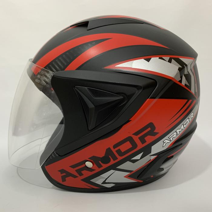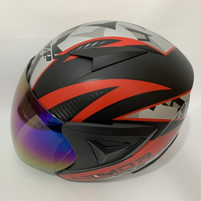 HELM JP 13 ARMOR MERAH HITAM DOFF - KACA PELANGI RAINBOW / IRIDIUM / SILVER / CLEAR - HELM DEWASA - HELM SNI - HELMET - HELEM - (CLEAR) JP13 ARMOR MERAH DOFF