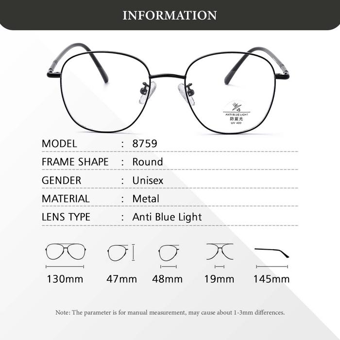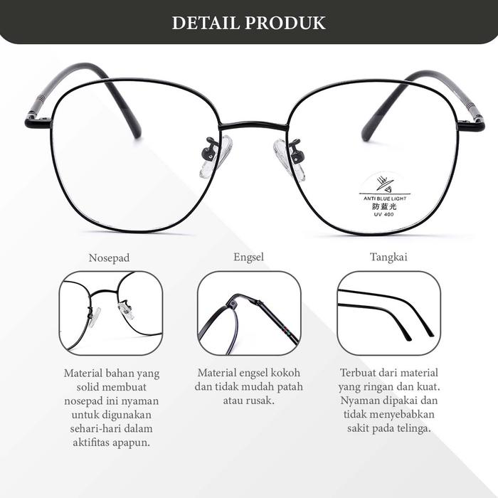 KACAMATA LENSA MINUS PHOTOCROMIC ANTI BLUERAY BULAT PRIA WANITA METAL SSON TVTE 8759 - C1, BLUERAY NORMAL