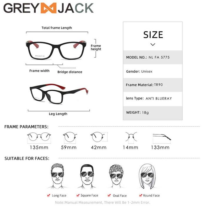 GREY JACK KACAMATA SPORT ANTIRADIASI BLUERAY TR90 RINGAN LENTUR KOKOH 5775 - BROWN, BLUERAY NORMAL