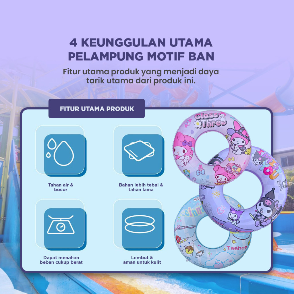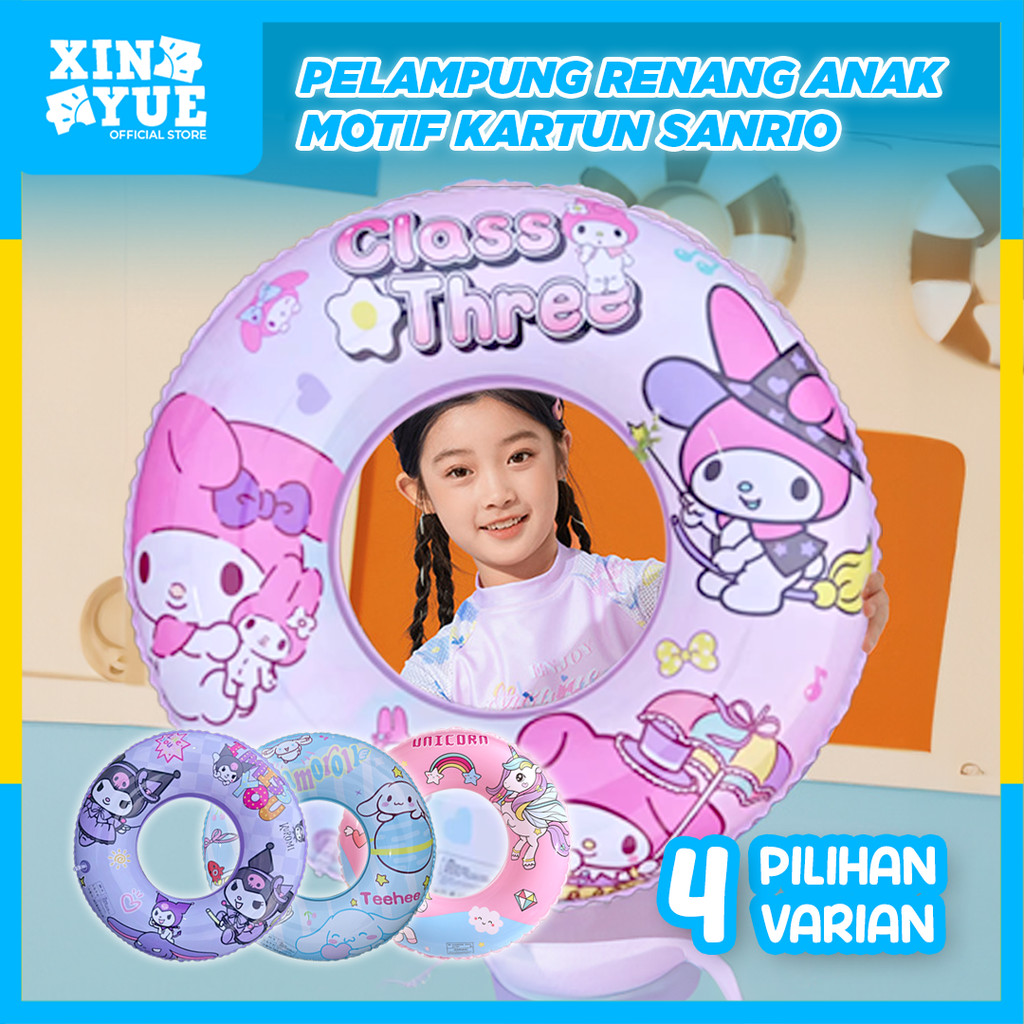 NAKAMA_SHOP Xin Yue Pelampung Ban Renang Anak Karakter Sanrio Kuromi Cinnamoroll Melody Swim Ring Safety Baby Boat Material PVC