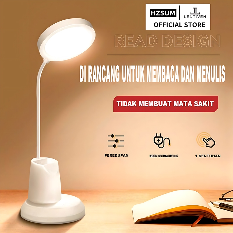 HZSUM LENTIVEN Lampu Baca LED Portable Meja Belajar Tricolour Sentuh 3 Flexible Tempat Pensil