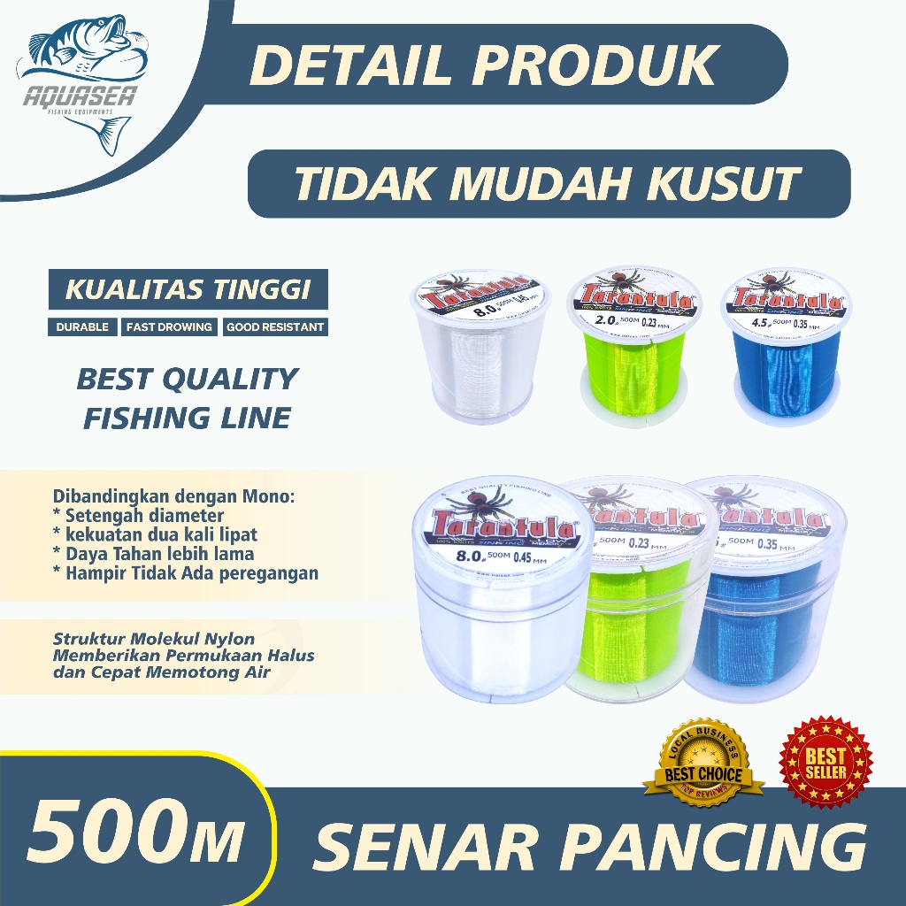 NAKAMA_SHOP AQUASEA Tali Pancing TARANTULA 500Meter Nilon Pancing BahanNilon Pancing AntiKeriting SuperKuat