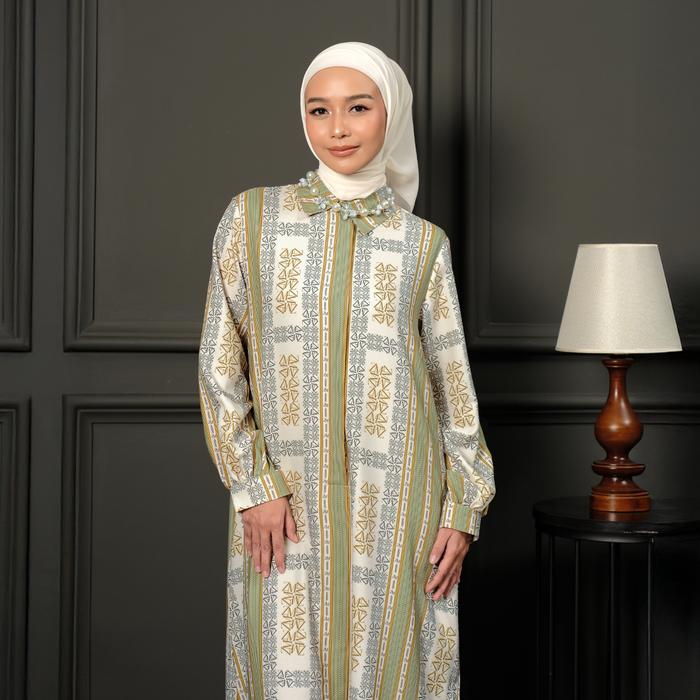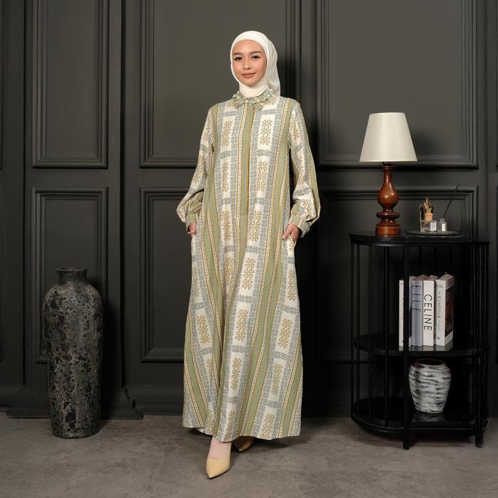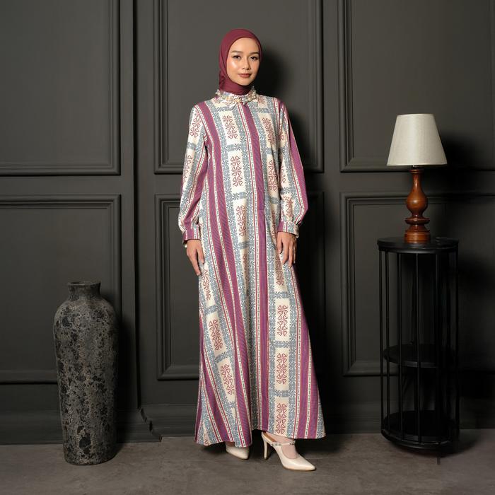 ZM ZASKIA MECCA - MARLA GAMIS WANITA - EDISI MONOGRAM LAMBANG DRESS KERAH - MAROON, S