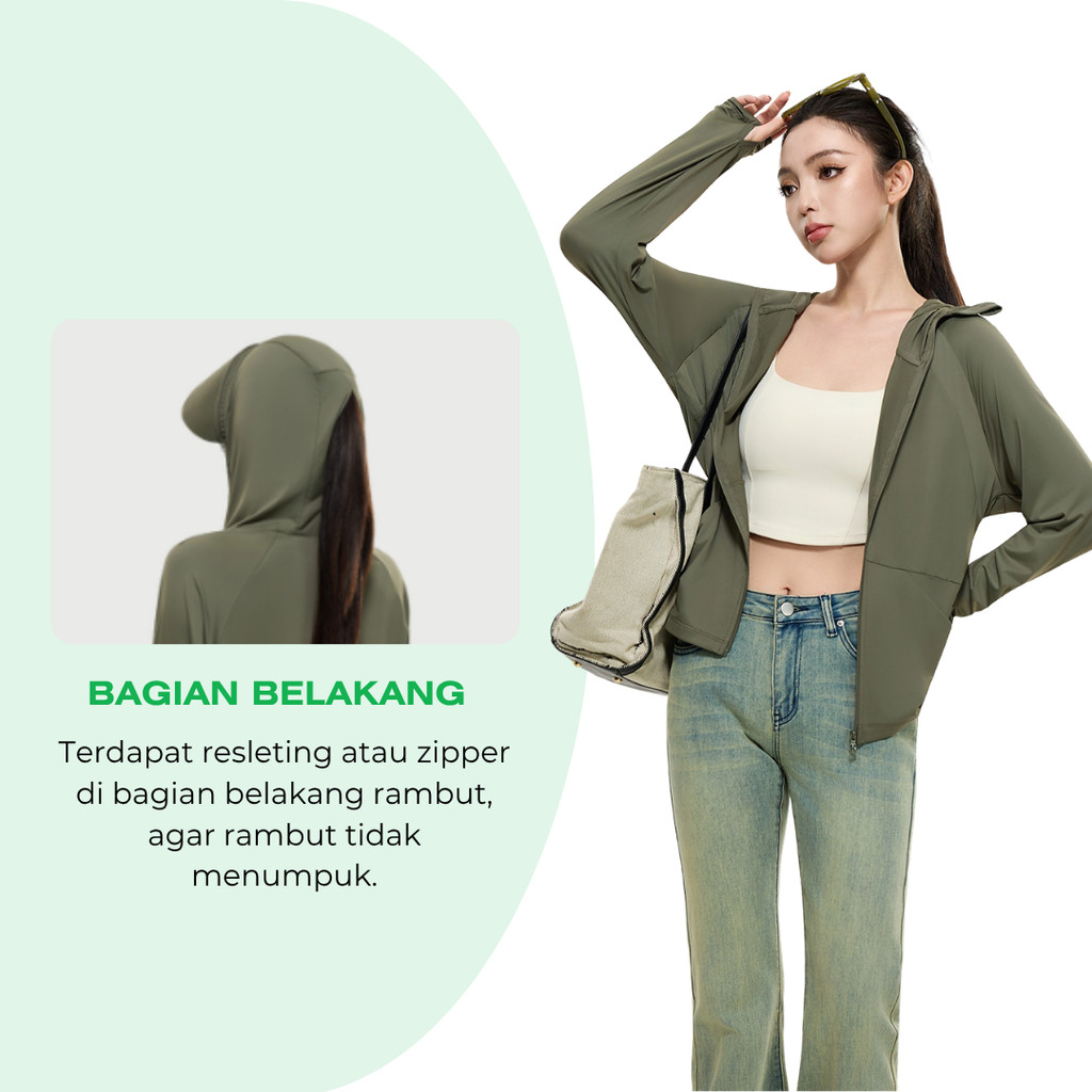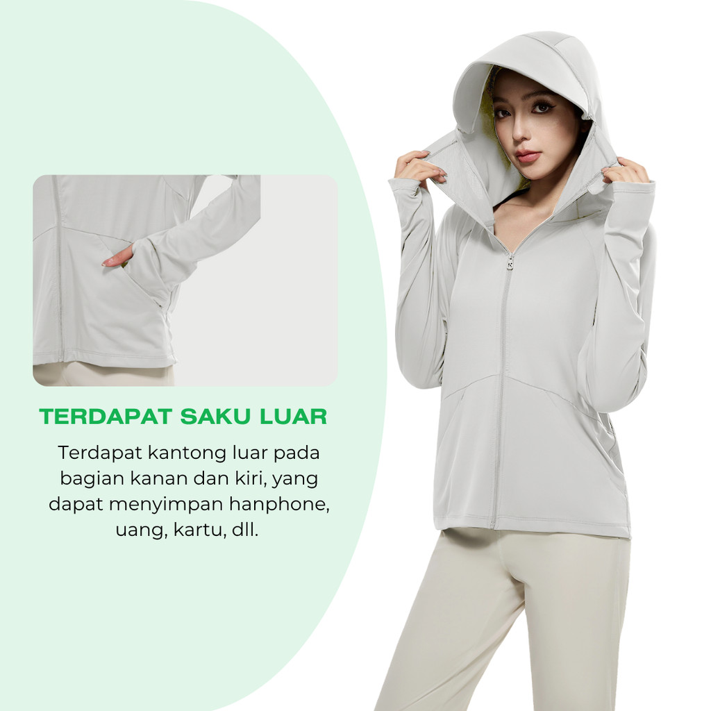 NAKAMA_SHOP KKTOP Jaket Anti UV Wanita Lengan Panjang Jaket Olahraga Pelindung Matahari Premium UPF 100+ (J002)