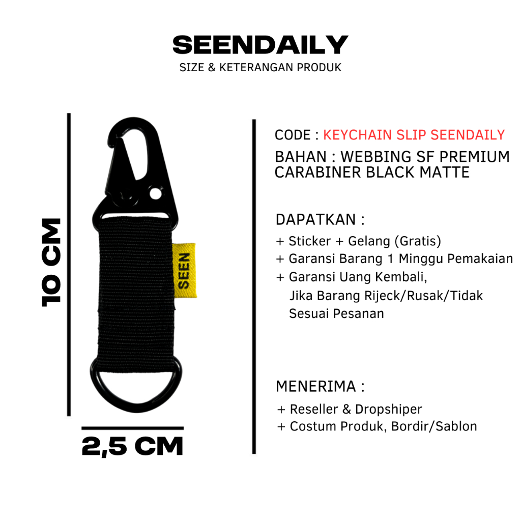 NAKAMA_SHOP Seendaily - Gantungan Kunci Polos Webbing Carabiner Snaphook 25mm Black Matte Slip - Keychain Polos