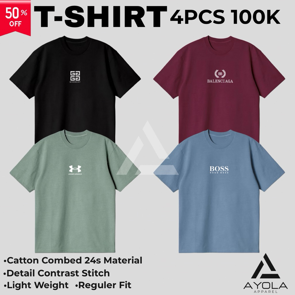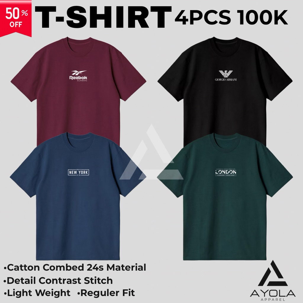 Paket 4Pcs 100RibuanKaos Pria Distro Sablon Lengan Pendek Catton Combed 24s Size M Jumbo XXL
