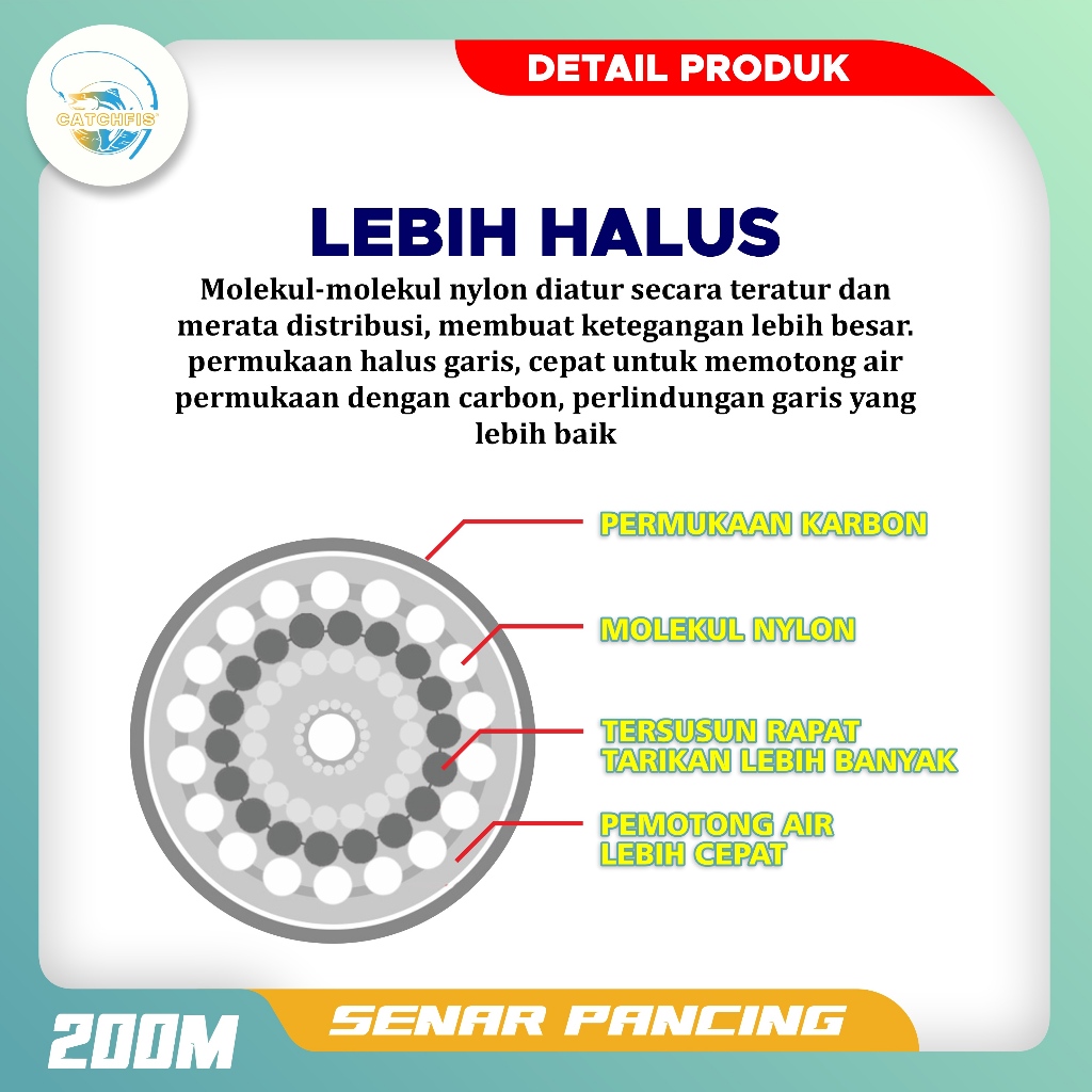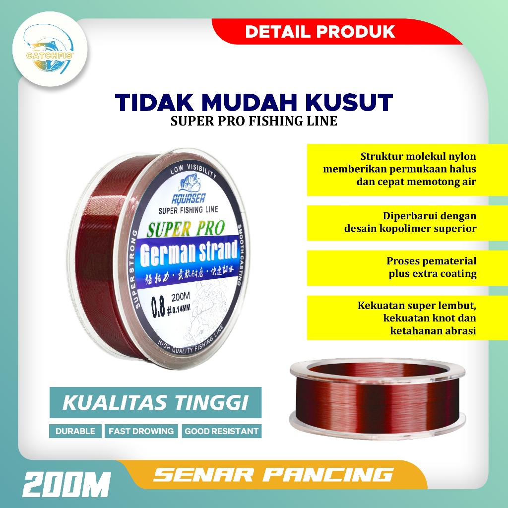 NAKAMA_SHOP Catchfis - Tali Pancing Germany Fishing Line 200m Senar Invisible Bahan Nilon Tahan Lama Panjang