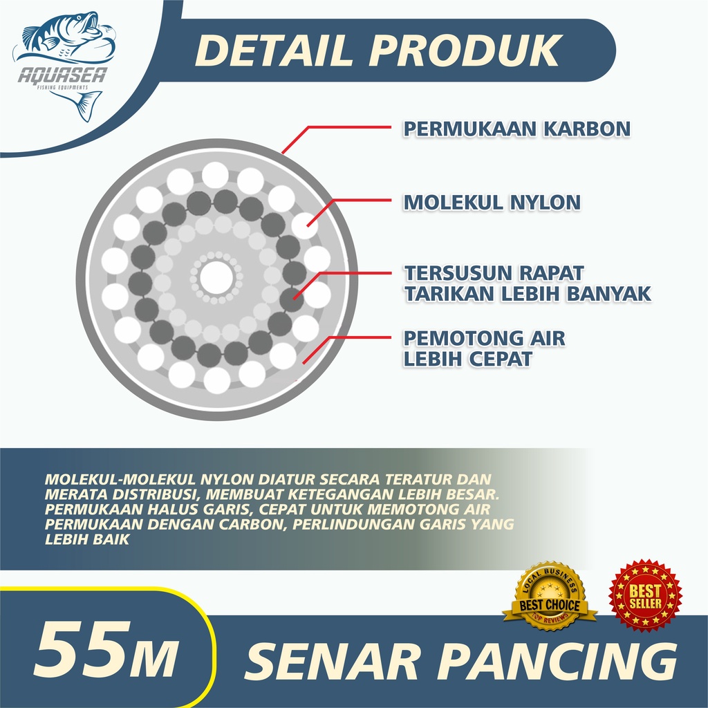 NAKAMA_SHOP AQUASEA Pancing Trilene Putih Panjang 55m Nilon Memancing Pancing Ikan Bunglon Pancing Terlihat