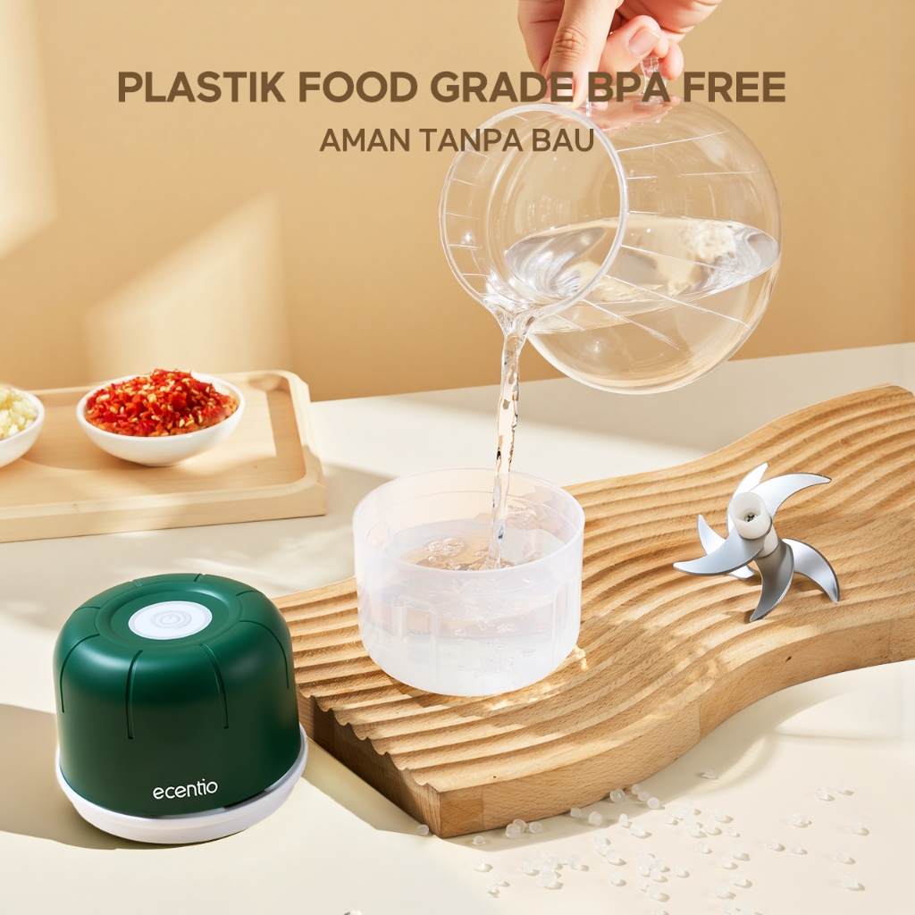 ecentio Mini Food Processor 6 Pisau 250ML Giling Bawang & Daging 10 Detik Penghalus Bumbu Food Grade Mini Chopper MPASI Bayi 250ML BPA Free