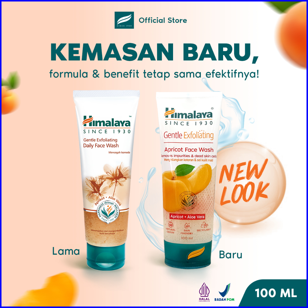 Himalaya Gentle Exfoliating Daily Face Wash 100ml - Sabun Cuci Muka Untuk Mengurangi Komedo Dengan Lidah Buaya Aprikot N
