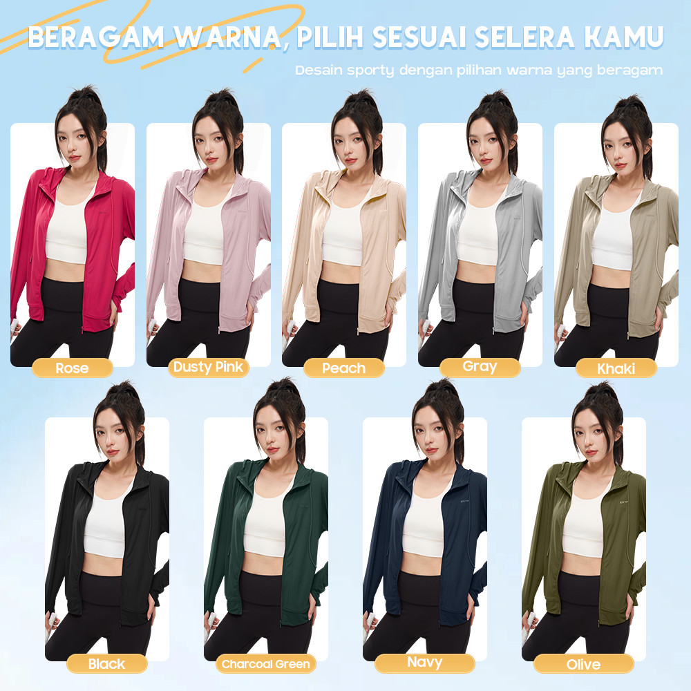 NAKAMA_SHOP KKTOP Jaket Anti UV Wanita Hoodie Olahraga Jaket Airism Sport UPF50+ (J010)
