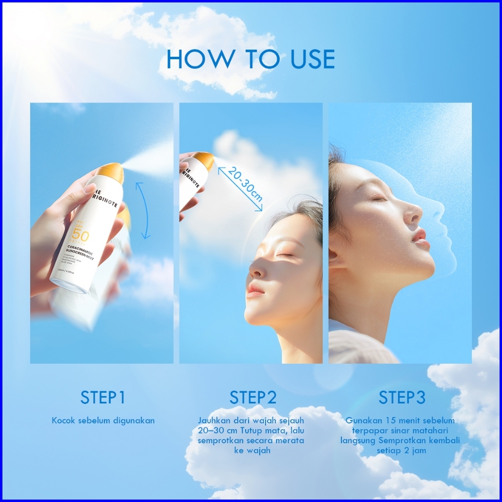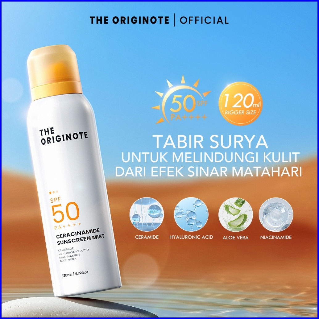 The Originote Ceracinamide Sunscreen Mist Spf 50 Pa - Uv - Melembabkan Wajah No Whitecast Protector Sunscreen Spray Face