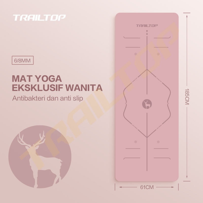NAKAMA_SHOP TrailTop Matras Yoga Premium TPE Yoga Mat Anti Slip Matras Olahraga Tebal 6/8 mm