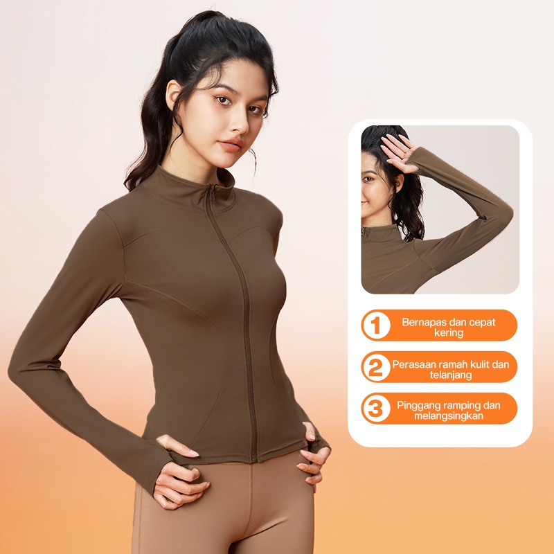 NAKAMA_SHOP WiZi Baju Lari Wanita Baju Gym Wanita Lengan Panjang Untuk Olahraga Yoga Jaket Anti UV (MT01)