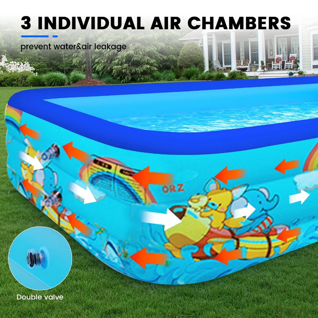 NAKAMA_SHOP WETECH Kolam Renang Anak Jumbo 3 Meter 3-Ring Kolam Renang Anak Pompa Portable Kolam Berenang Anak