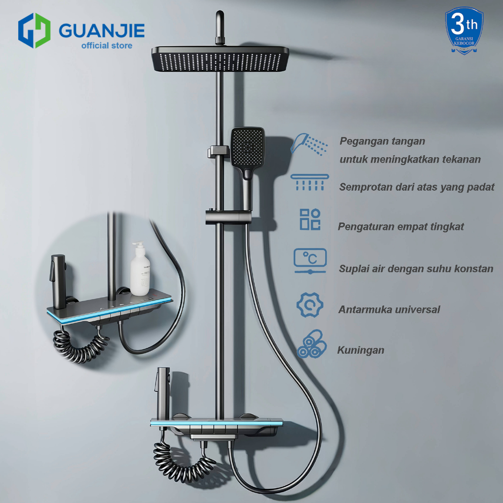 AVROL STORE GUANJIE - shower kamar mandi satu set + keran shower + set shower bathtub stainless steel - set batang shower air panas dan dingin - paket mandi LED