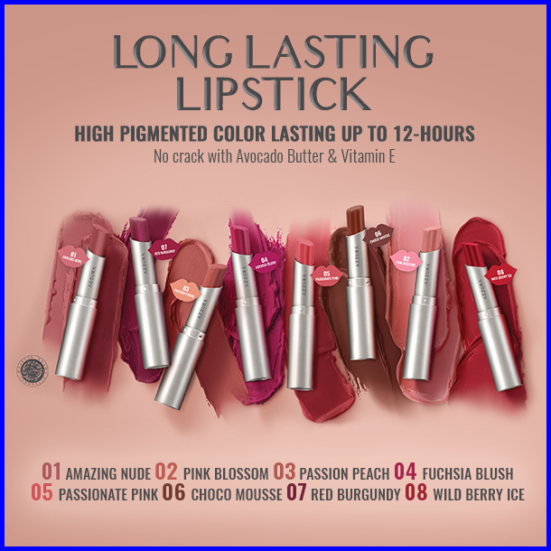 Azzura Longlasting Lipstick Lipstik Tahan Lama 01 Amazing Nude 08 Wild Berry Ice