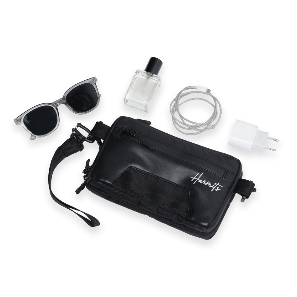 Harmits Project ETHEROOT Clutch Pria Warna Hitam Multifungsi (Hand bag + Sling bag + Hanging bag) Bahan Bimo Nilon Water