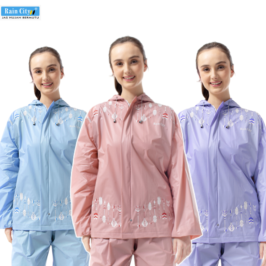 BYE BYE BADMAN RAIN CITY Jas Hujan Setelan Ransel Wanita Aesthetic Lucu Arrows 70029
