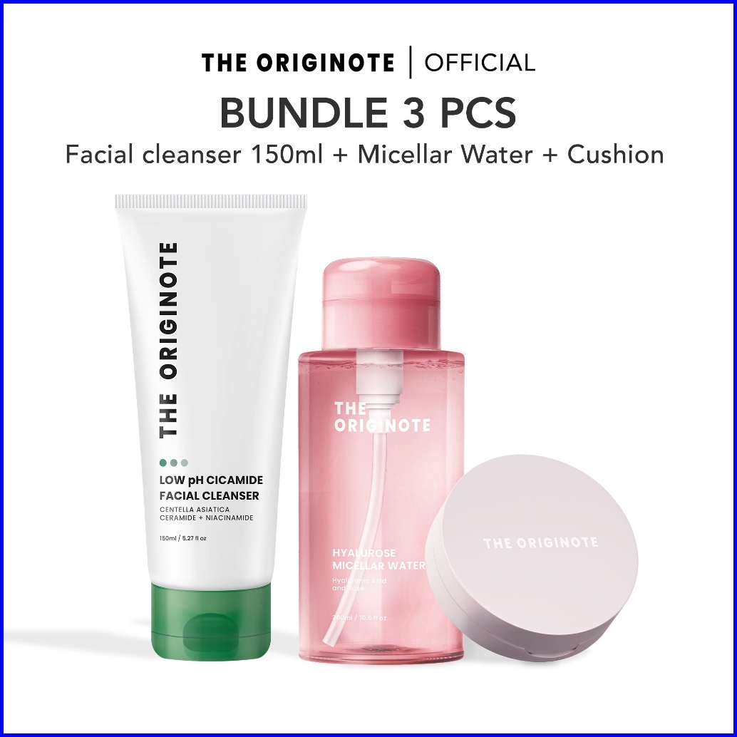The Originote Bundle High Cover Serum Cushion Hyalurose Micellar Water Low Ph Cicamide Facial Cleanser 150ml